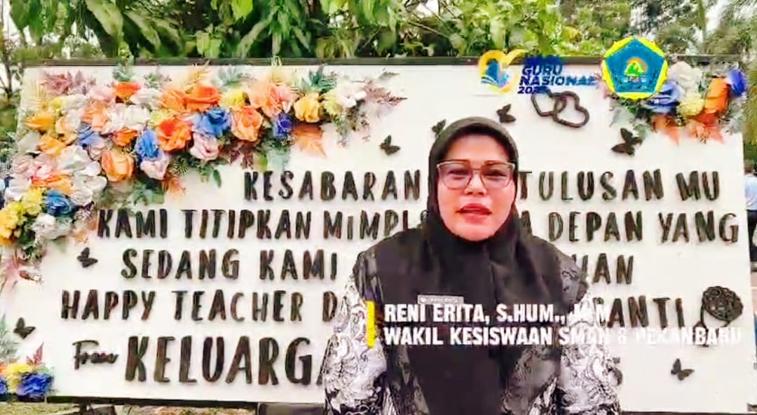 Ibu Andri Murni, S.Pd., M.Si., wakil kurikulum SMA Negeri 8 Pekanbaru, mengatakan, “Dunia boleh saja berubah, tapi peranan kita sebagai pendidik tidak akan pernah tergantikan”, selamat Hari Guru 2025.
