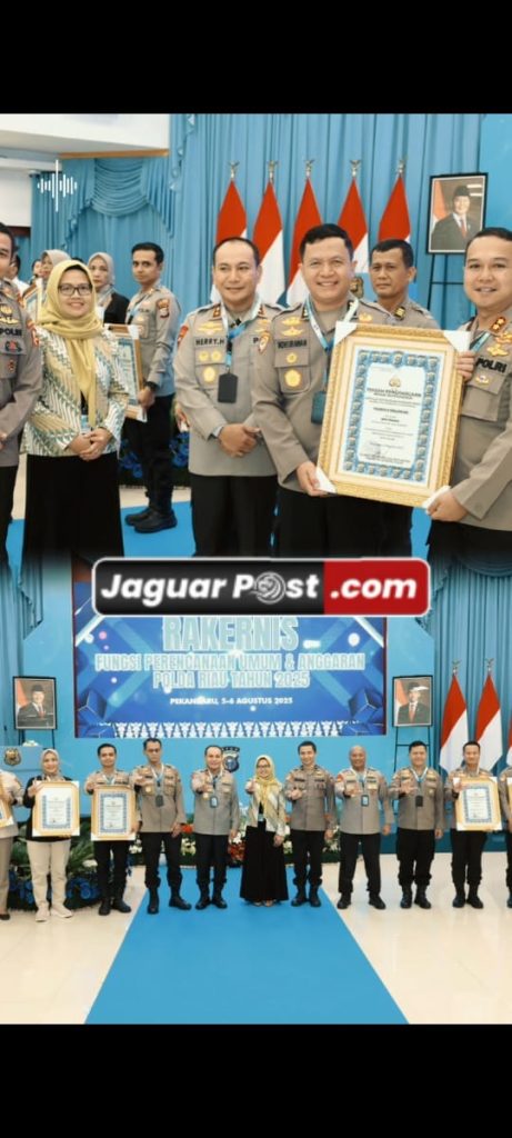 JAGUARPOST.COM || Pekanbaru – Pada hari Selasa, 5 Agustus 2025, Kepolisian Daerah Riau menggelar kegiatan Rapat Kerja Teknis (Rakernis) Fungsi Perencanaan Tahun 2025 yang dilaksanakan di Aula Tribrata Polda Riau. Kegiatan ini dipimpin langsung oleh Kapolda Riau Irjen Pol. Herry Heryawan, S.I.K., M.H., M.Hum dan dihadiri oleh para Pejabat Utama Polda Riau, para Kabagren serta operator perencanaan dari seluruh Polres/Ta jajaran.