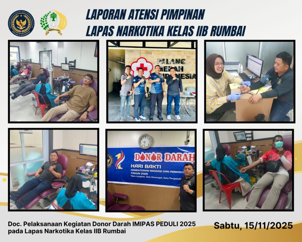 JAGUARPOST.COM || PEKANBARU — Dalam rangka menyambut Hari Bakti Kementerian Imigrasi dan Pemasyarakatan (Kemenimipas) Ke-1 Tahun 2025, Lembaga Pemasyarakatan (Lapas) Narkotika Kelas IIB Rumbai mengikuti kegiatan donor darah sebagai bentuk kepedulian sosial dan pengabdian kepada masyarakat, Sabtu 15 November 2025.