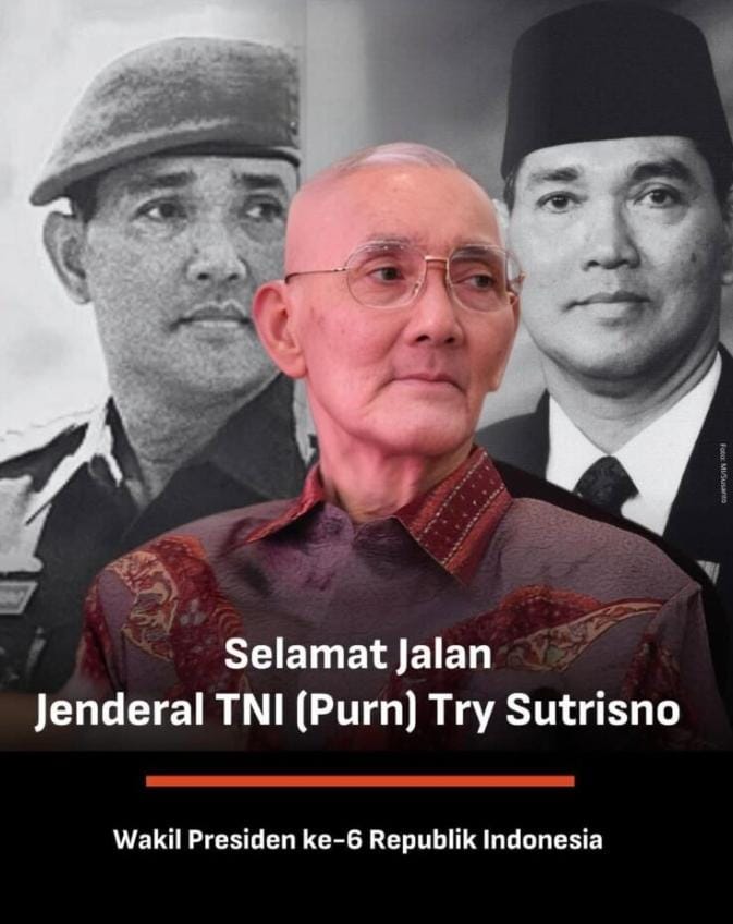 JAGUARPOST.COM ||Jakarta:,– Keluarga besar Tentara Nasional Indonesia Angkatan Darat (TNI AD) menyampaikan duka cita mendalam atas berpulangnya salah satu putra terbaik bangsa sekaligus prajurit terbaik TNI, Jenderal TNI (Purn) H. Try Sutrisno, yang tutup usia pada Senin, (2/3/2026) pukul 06.58 WIB di RSPAD Gatot Soebroto.